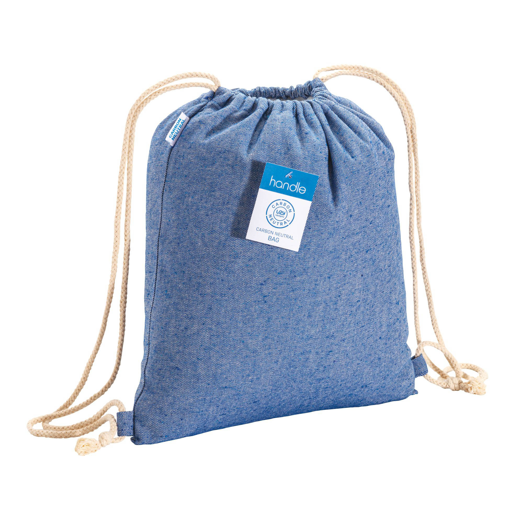 280 g/m2 recycled cotton melange-effect backpack with drawstring choke closure attached with buttonhole