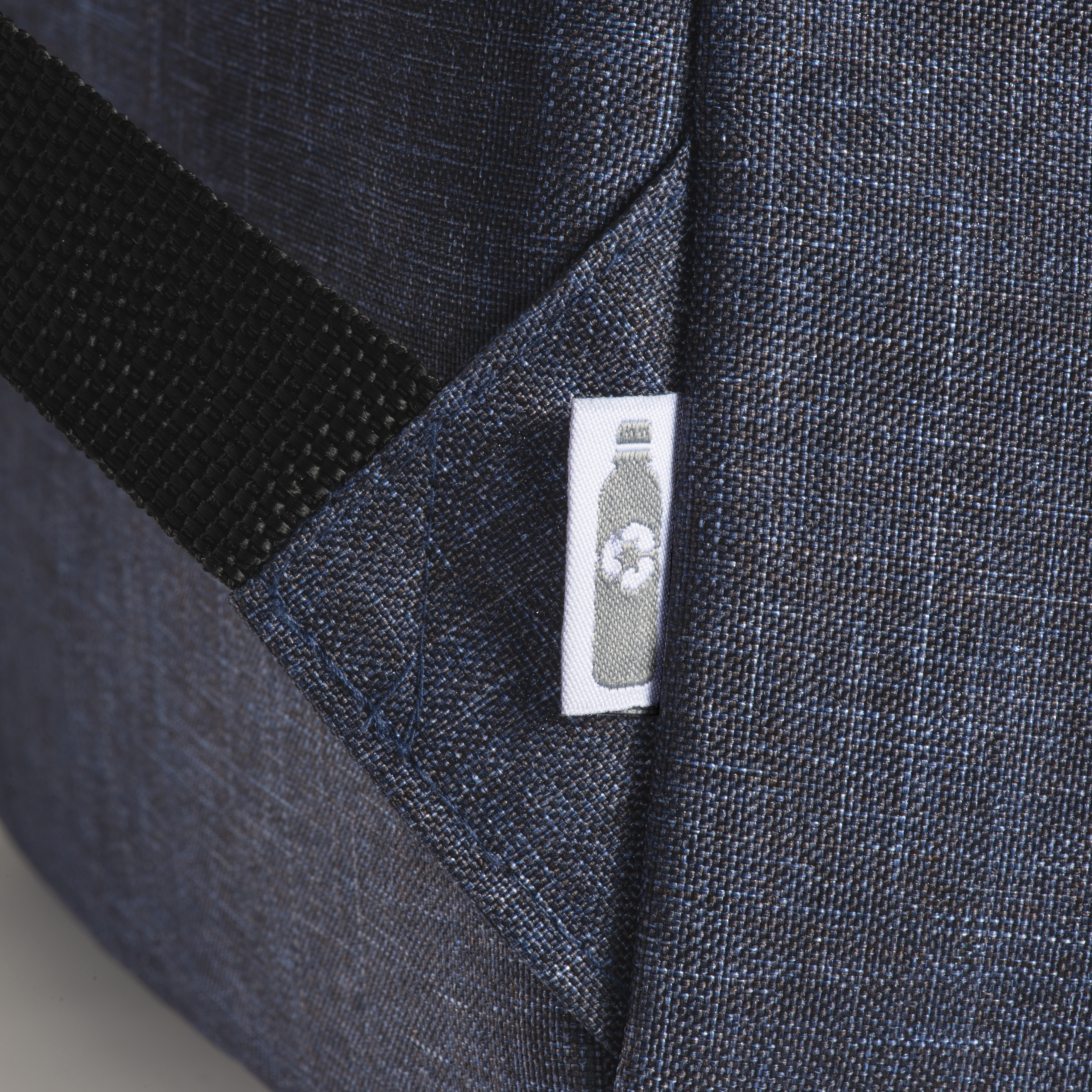 Laptop backpack in recycled PET with a melange effect. Customized lining. Padded backrest and shoulder straps