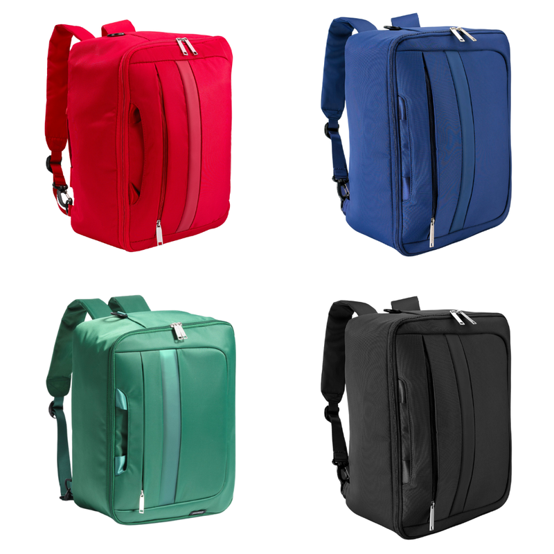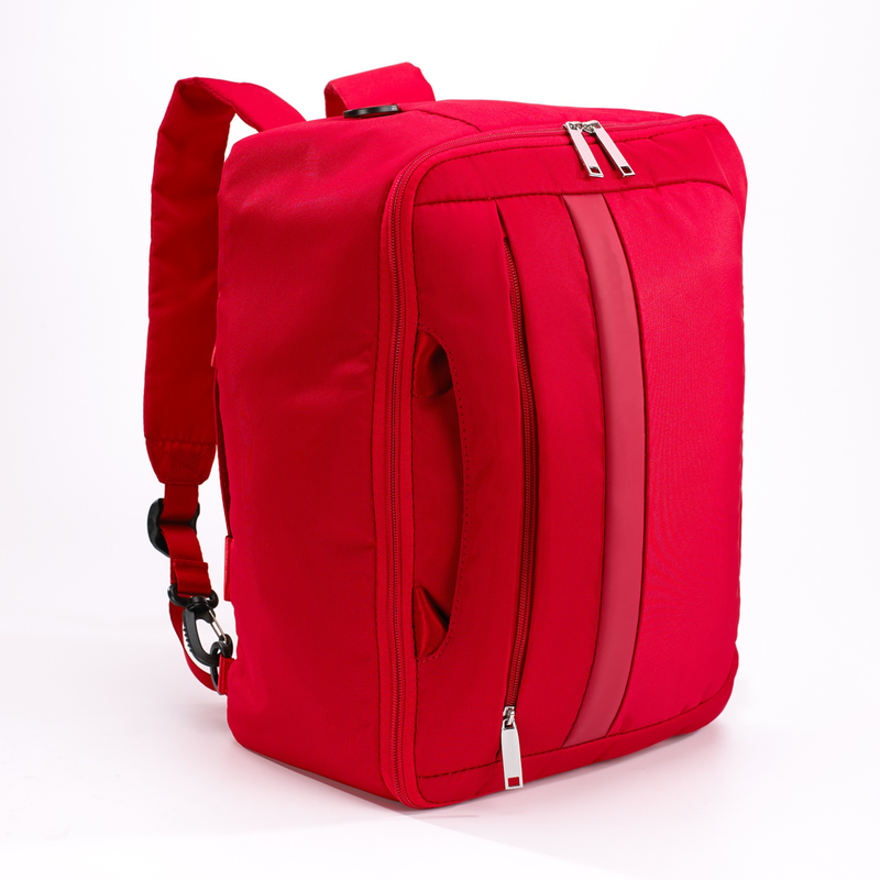 2 products in 1: backpack and carry-on bag Mistral. Light, spacious, with straps inside. It has retractable braces, a detachable, adjustable shoulder strap, fastening straps, a spacious main compartment, an outer pocket with a zipper. Made of durable material. Capacity: 16,5 l