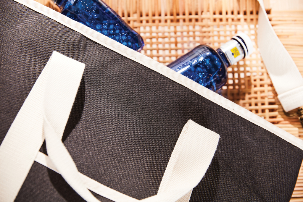 Cooler bag that is mottled tone by tone with details in imitation leather and cotton so that it is as beautiful as an ordinary bag and you can picnic in style. Made from 50% recycled material from PET bottles. There is also a small compartment on the outside of the cooler bag, providing space for other items as well. The thick PEVA padding ensures that the cold is retained for a long time. It is also easy to clean and dry after use. With an adjustable shoulder strap and double handle, you have different ways to carry the cooler bag.