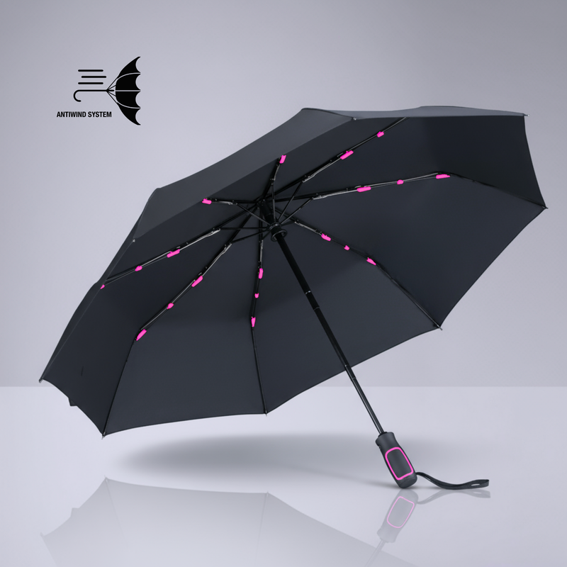The Dynamic umbrella is a durable, compact model with an automatic open-close system and a wind-resistant frame. Made from quick-drying polyester pongee and featuring a comfortable PU-coated handle, it’s perfect for everyday use and travel.