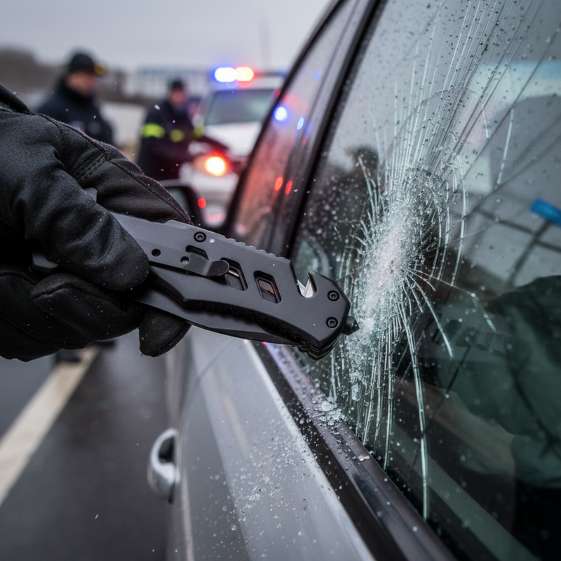 A massive and durable Optima emergency knife in new guise, made of high-quality stainless steel with titanium coating for improved hardness and extra corrosion resistance. The profiled handle ends in a robust window breaker and car belt cutter. Opens with a double-sided pin, ideal for both right and left-handed users. Features a liner lock safety device to prevent accidental closing during use. A metal clip allows the knife to be clipped to a belt or in a trouser pocket. This knife will find use as an everyday knife as well as an emergency knife. Ideal for paramedics, drivers, extreme sports practitioners.