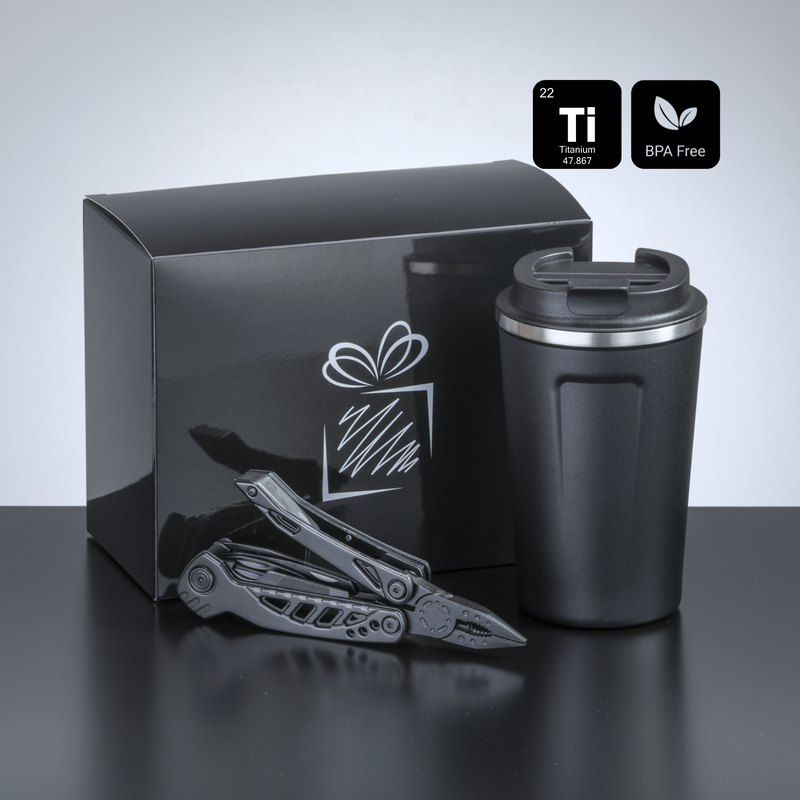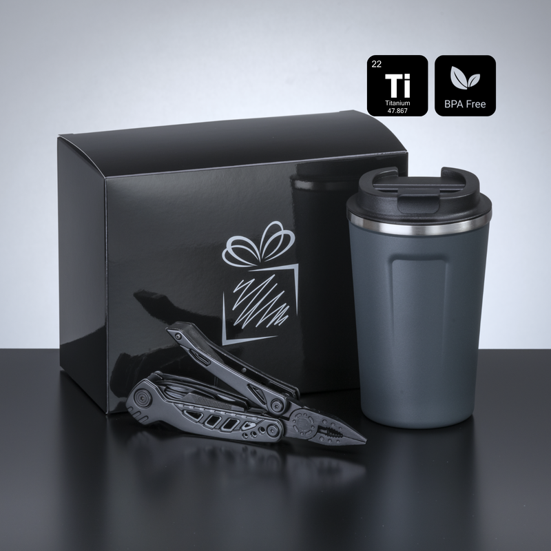 SpecificationsMaterial: 2Cr13 steel, POSCO steel, copper layer, powder coating, silicone, stainless steel, titanium coating Colour: yellow, orange, red, blue, green, gray, black Dimensions: 90x90x154 mm ; 109x39x25 mm Weight (g) / Fabric Weight (g/m2) / Volume (ml): 549 g Personalization: Engraving, Pad printing, UV printing Additional Information: Delivery costs excluded. |