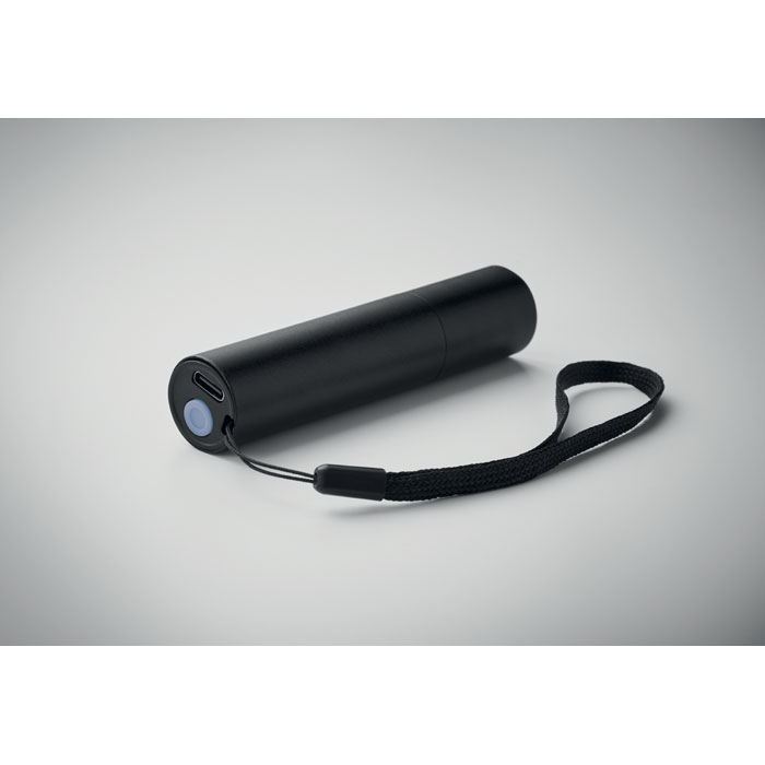 Aluminium rechargeable torch 110 lumen with 3 light settings and zoom in/out functionality. Built-in 400 mAh rechargeable battery and charging cable included.